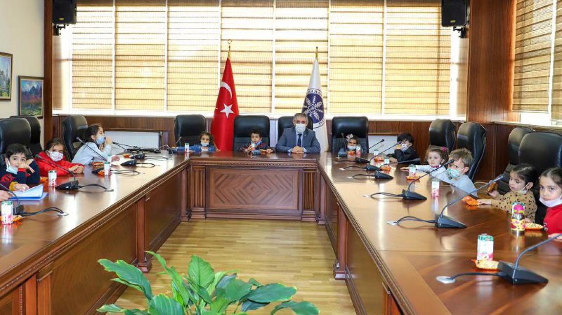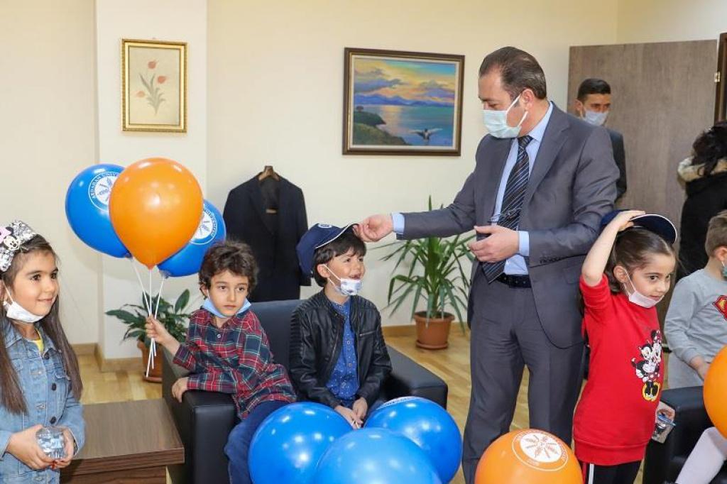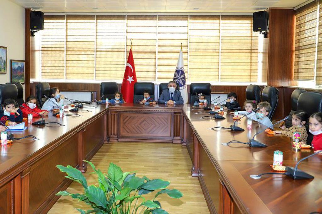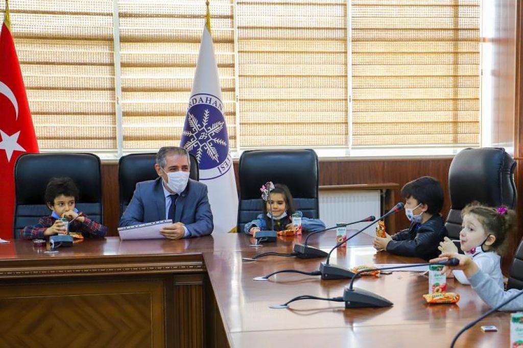 Öğrencilerimiz Ardahan Üniversitesi Rektörü Sayın Prof. Dr. Mehmet Biber'i makamında ziyaret etti. Minik öğrenciler Rektörümüze çiçek takdiminde bulundu. Öğrenciler daha sonra Genel Sekreterimiz Kubilay Aras'ı ziyaret etti. Öğrencilerle sohbet şeklinde gerçekleşen ziyaretler, fotoğraf çekiminin ardından son buldu.